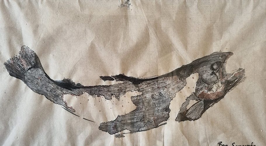 I chose to leave the center light to highlight the 'grain' of the scales and arch of the back. To me, this piece represents that first moment of clarity when a fish breaks the surface - dark, wet, capturing raw energy.