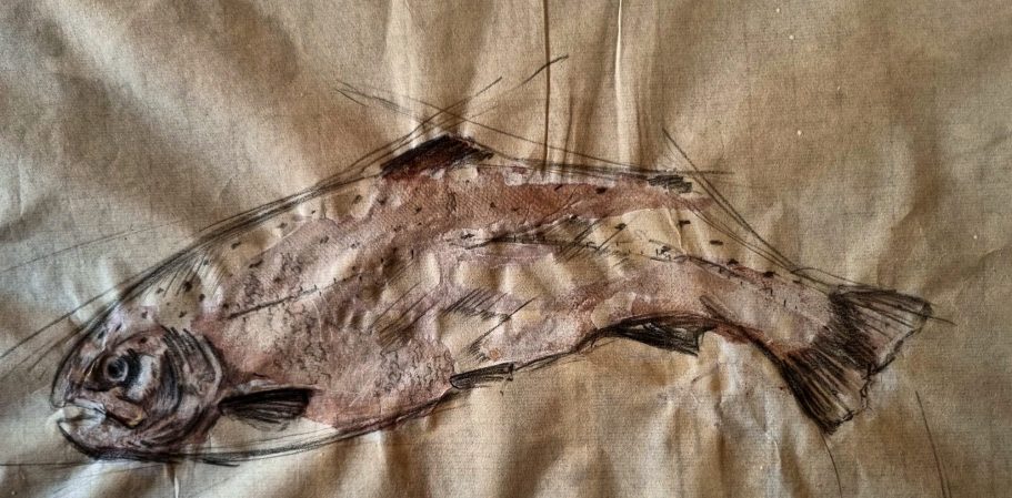 I like how the ink varies in intensity - some impressions are bold and defiant while others are as fleeting as a shadow passing under a boat. Its less about specific fish and more about the energy of the river itself.